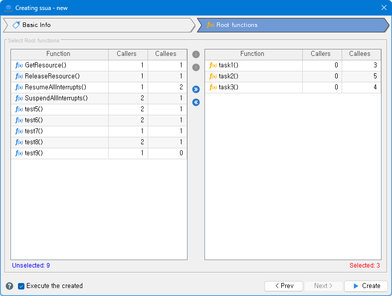 Right list: Shows the function selected as the root function in the module.