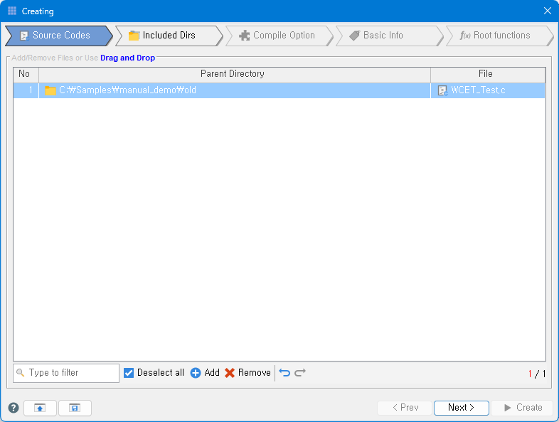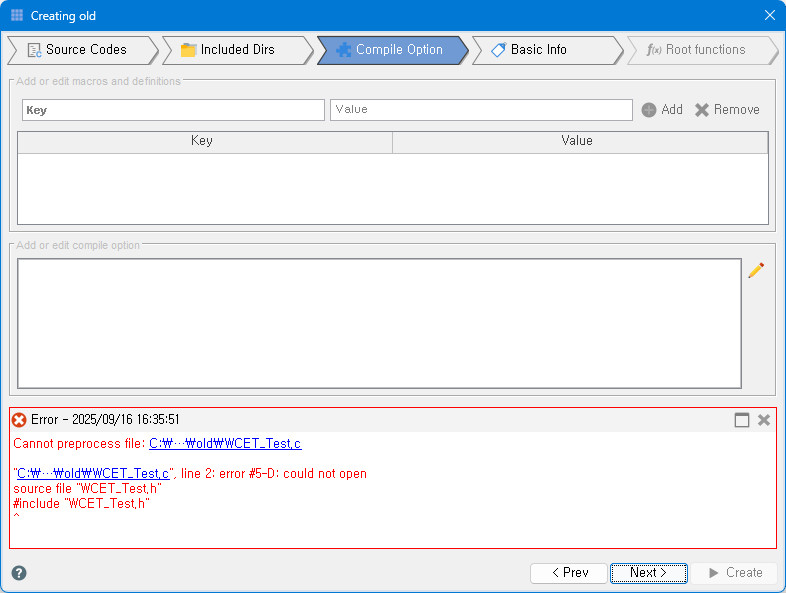 After entering compile options, the validation and pre-analysis are conducted based on entered information