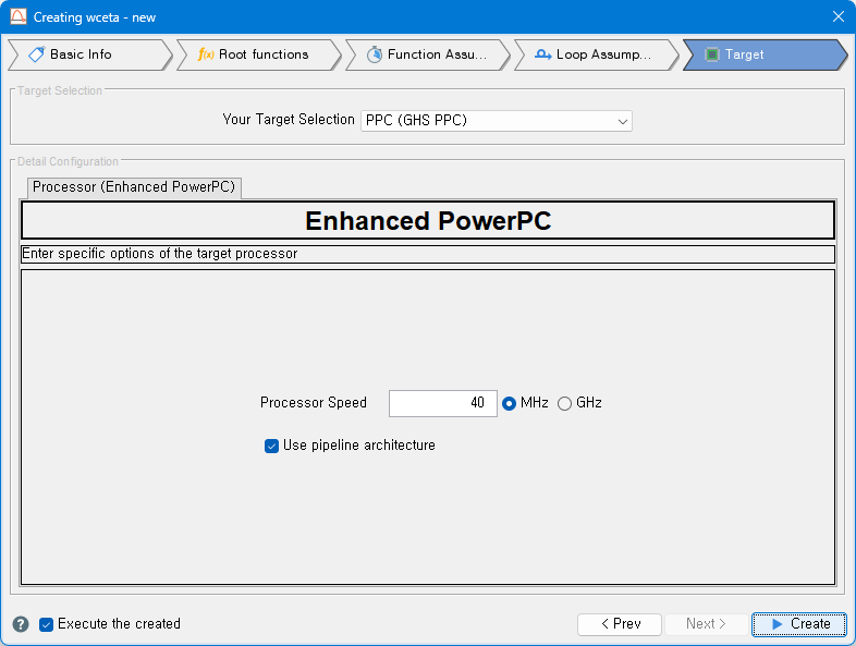 For processors that support pipeline analysis, display options to enable it. If you choose to use a pipeline